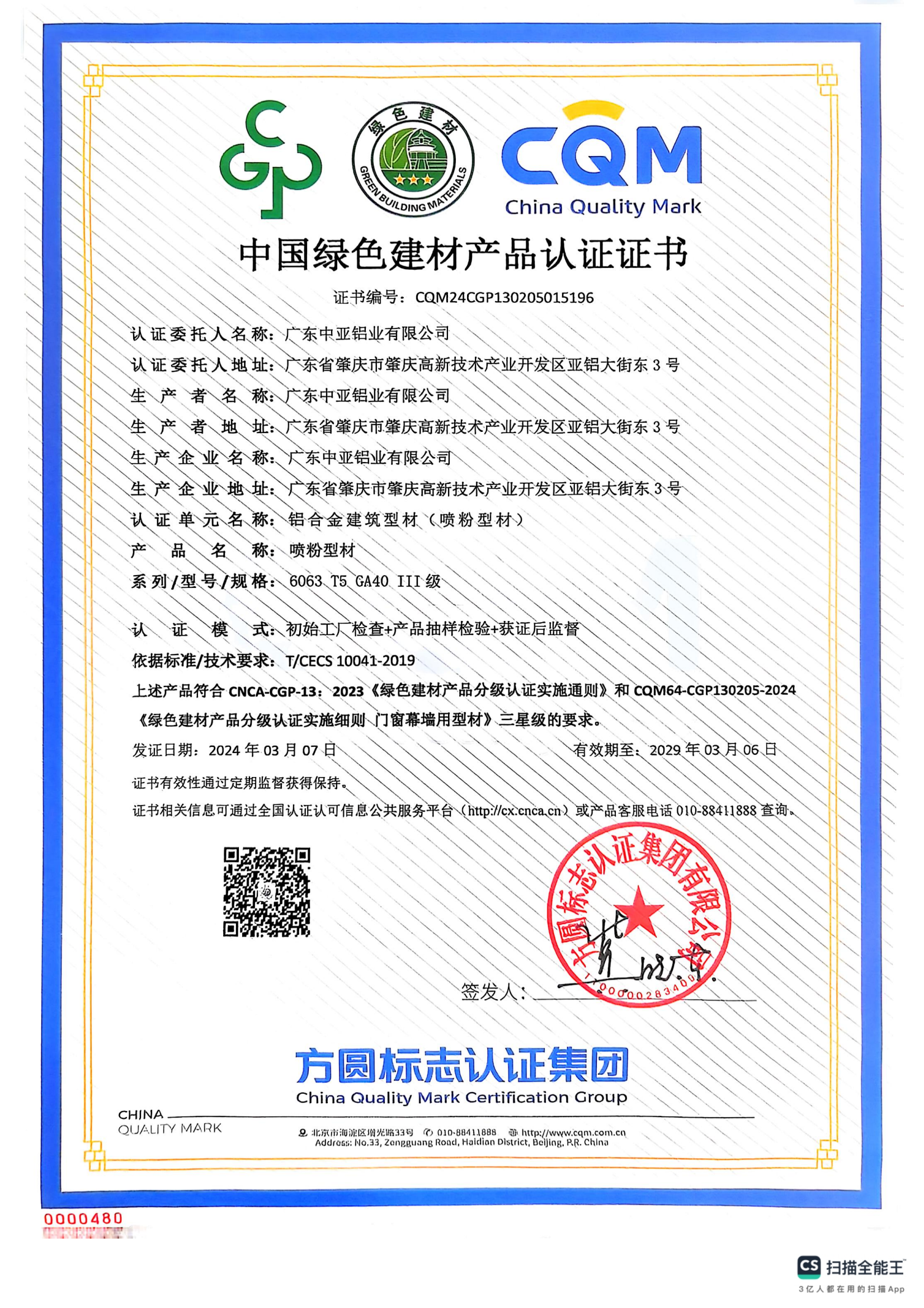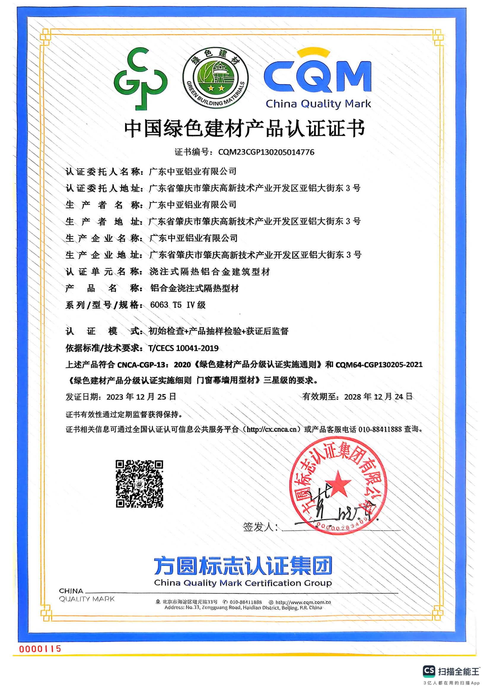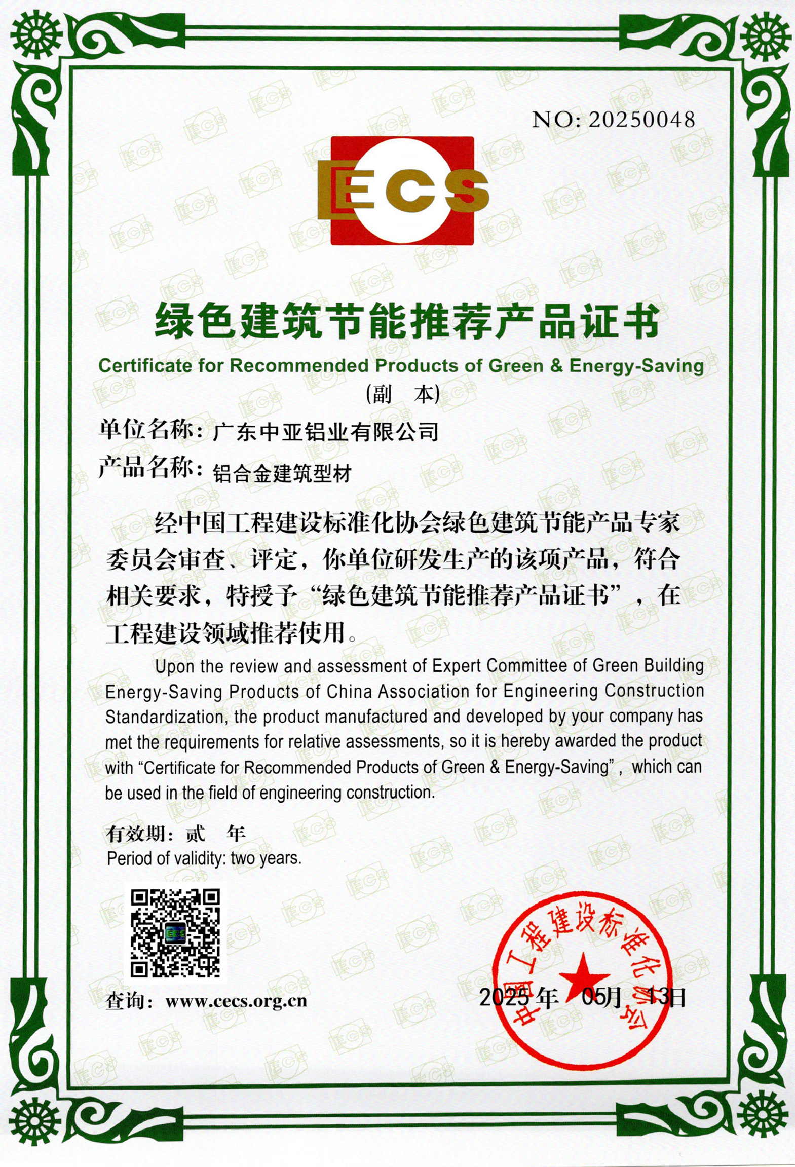 綠色建筑節(jié)能推薦產(chǎn)品證書